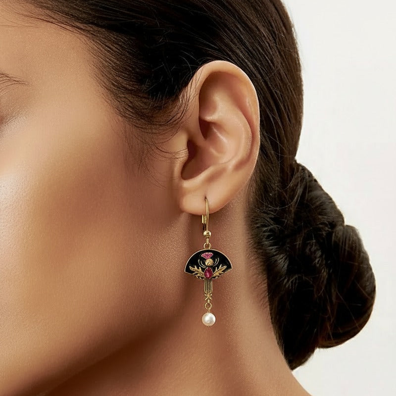 Kolczyki z czerwonymi kryształami i perłami w stylu vintage